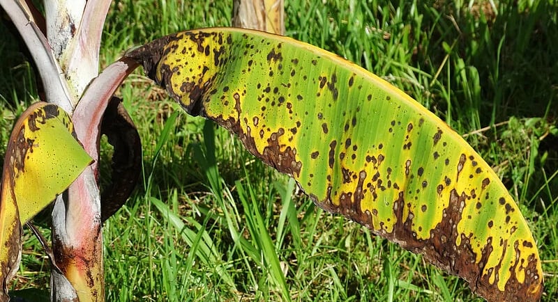 Symptoms of Black Sigatoka: Black Sigatoka primarily affects leaves but its consequences impact the entire plant and its fruits.
