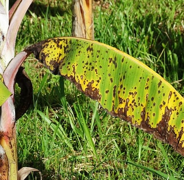 What is Black Sigatoka? Black Sigatoka, also known as Black Leaf Streak, is a particularly aggressive foliar disease that can reduce yields by up to 50% if left untreated. It is caused by Pseudocercospora fijiensis, a fungus belonging to the order Capnodiales and the family Mycosphaerellaceae. This pathogen targets banana plants of the genus Musa, including Cavendish and Plantain cultivars.